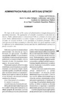 Administraţia publică: artă sau ştiinţă? The topic on the statute of the science of administration is largely discussed in specialized literature. 1Ъе approaches of scientific researchers in this field are diverse. Public administration is characterized both as a domain of science and of art. Public administration is a science because it possesses: a) its own object of study: b) research method ;; c) the possibility to formulate principles. There exist preconceived ideas according to which the talent of a good organiser would be sufficient in the administrative activity and that the administrative activity is a purely executive one.