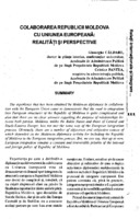 Colaborarea Republicii Moldova cu Uniunea Europeană: realităţi şl perspective The experience that has been obtained by Moldovan diplomacy in collabora tion with the European Union come to demonstrate that the road to integration into European structures of the Republic of Moldova is quite complicated and also that there are no clear answers regarding the purpose of relationships be tween both parties. Moldova, unlike the Baltic States and those of Central and South-Eastern Europe, has not met the same way of the European integration process. Obviously, there are a number of objectives and subjective causes of which depended on the Moldovan diplomacy activity for including the Republic of Moldova in the European integration process. But, we can say, that up to now, European integration remains a constant and irreversible priority of the internal and foreign policy of Republic of Moldova.
