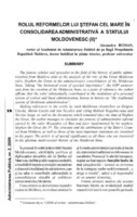 Rolul reformelor lui Ştefan cel Mare în consolidarea administrativă a Statului Moldovenesc (II) The famous scholar and specialist in the field of the history of public admin istration from Moldova aims at the analysis of the role of the Great Moldovan ruler, Stephen the Great in the administrative consolidation of the Moldovan State. Taking "the historical event of epochal importance", the 65Q' anniver sary from the creation of the Moldovan State, as a point of reference, the author affirms that the ruler substantially contributed to the institution of a personal system of central and local administration, known in history as "the traditional system of Moldovan administration". h Making references to the works by such Moldovan chroniclers as Grigore Ureche, Miron Costin and /on Neculce and citing Mikhail Kogalniceanu and Nicolae lorga, as well as the documents which remained since the time of Stephen the Great, the author manages to elucidate the process of administrative reforms started by the ruler Alexandru cel Bun and later implemented by his nephew, Stephen the Great the 3 . The structure and the attributions of the Ruler s Coun- i set from Moldova, as well as those of the most important statesman are examined : in the paper. The article is of special significance to all those who are interested in the glorious multi-secular history of the Moldovan State.