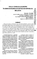 Rolul Consiliului Europei în democratizarea societăţii din Republica Moldova The present article is dedicated to the cooperation of Moldova with one of the international organizations of great influence on the European continent, namely the Council of Europe. There are reviewed briefly the main activities of the Coun cil of Europe in the democratization of Moldovan society, such as building the rale of state law, respecting human rights, preparing democratic elections, in creasing the role of media in society, NGOs, etc. It is also considered the coop eration with the Moldovan authorities with the Information Office of the Council of Europe in Moldova. The end of the article contains necessary conclusions and certain proposals are made.