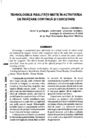 Tehnologiile realităţii mixte în activitatea de învăţare continuă şl cercetare Knowledge is assimilated more efficiently in a virtual world, in which words are replaced by images, virtual video sequences and at the same time are touch able, involving different human sensors. This article is about the space offered by the mixed reality, which offers the possibility of cooperation between the user and the computer. The Mixed Reality Technologies, and their components, are described from the point of view of the offered perspective in the continuous learning activity.
