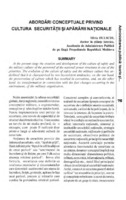 Abordări conceptuale privind cultura securităţii şi apărării naţionale At the present stage the creation and development of the culture of safety and the military culture of the personnel of the national power structures is one of the priorities. The evolution of the culture of safety and the military: culture has un derlined that it is characterised by two inconsistent tendencies: on the one hand, the preservation of culture which has resulted in executions, and, on the other hand, its transformation in connection with the. fast changes occurring in the environment, of the military organization.