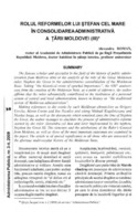 Rolul reformelor lui Ştefan cel Mare în consolidarea administrativă a Ţării Moldovei (III) The famous scholar and specialist in the field of the history of public admin istration from Moldova aims at the. analysis of the role of the Great Moldovan ruler, Stephen the Great in the administrative consolidation of the Moldovan State. Taking "the historical event of epochal importance", the 650 anniver sary from the creation of the Moldovan State, as a point of reference, the author affirms that the ruler substantially contributed to the institution of a personal ! system of central and local administration, known in history as "the traditional system of Moldovan administration".Making references to the works by such Moldovan chroniclers as Grigore Ureche, Miron Costin and Jon Neculce and citing Mikhail Kogalniceanu and Nicolae iorga, as well as the documents which remained since the time of Stephen the Great, the author manages lo elucidate the process of administrative reforms , started by the ruler Alexandru cel Bun and later implemented by his nephew. Stephen the Great. The structure and the attributions of the Ruler's Counsel from Moldova, as well as those of the most important statesman are examined in the paper. The article is of special significance to all those who are interested in the glorious multi-secular history of the Moldovan State.