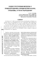 Кодекс Республики Молдова о правонарушениях: юридический анализ, проблемы, пути их разрешения On October 24" 2008 Contravention of Law of the Republic of Moldova was adopted, which was promulgated on the 29"' of December. 2008, published on the I6 of January- 2009 and so be in force starling with the 31" of May 2009. The new Contravention of Law has many priorities compared to the previons one but there are some vaguenesses, as well. They refer in particular to the ju ridical device of the application of legal proposition. In this article there is a juridical analysis on the new law according to which a number of improved recomandations are suggested.
