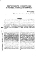 Comportamentul consumatorului în procesul decizional de cumpărare Le comportement du consommateur definit un processuspar lequel l'individu donne une reponse a une necessite. Ce processus combine des phases cognitives (la decision) et des phases d'action (l'achat el la consummation proprement dite. On fait une distinction claire entre le comportement de la consommation et celui de l'achat. Si dans le comportement de l'achat on retrouve des actions faites par Ie consommateur dans le moment ой il decide d'acheter ou поп un produit, le comportament de la consommation comprend тёте Ies actions impliquees dans I 'utilisation ou dans la consommation et le cutting vis-ă-vis des produits ou des services.