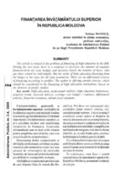 Finanţarea învăţământului superior în Republica Moldova This article is related to the problem of financing of high education in the RM. During the last years there is a tendency to decrease the number of students financed from the state budget, and increase slowly the number of those, who pay their school fee individually. But the mode of high education financing from the budget is the same for all state institutions. There are no differential criteria of financing according to profiles. The author is offering certain criteria, which should be considered in the financing of high education institutions, based on the division of profile studies.
