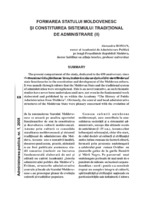 Formarea Statului Moldovenesc şi constituirea sistemului tradiţional de administrare (II) The present compartment of the study, dedicated to the 650 anniversary since the creation of the Moldovan State, is aimed at the analysis of the contribution of state functionaries to the constitution and development of the Moldovan culture. It was namely through culture that the Moldovan State and the traditional system of administration were strengthened. This is an novel tentative, as such thematic studies have never been undertaken until now, not even in the fundamental work elaborated and published by us within the Academy “The History of Public Administration from Moldova”. Obviously, the central and local administrative structures of the Moldovan State were plenary concerned.