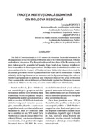 Tradiţia instituţională bizantină în Moldova medievală The fall of Constantinople in 1453 under the Ottoman Turks did not mark the disappearance of the Byzantine civilization and of its whole institutional, religious and cultural, thesaurus. The Byzantine idea and the values of the Byzantine world were taken over by a number of peoples from South-East Europe, which were later transmitted to future generations. The Byzantine institutional tradition was also continued in the Country of Moldova (Ţara Moldovei), whose rulers used the Byzantine precedent for the organization of the state and its institutions. Without officially declaring themselves as successors of the Byzantine kings, the rulers of Moldova perpetuated the political and religious values of this great civilization. They assumed the role of defenders of Christianity against the Ottoman expansion and raised Moldova to the rank of a new center of Eastern Christianity.