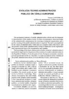 Evoluţia teoriei administraţiei publice în ţările europene The permanent tendency of public administration reform and development is characteristic of the modern society. In these circumstances, deep knowledge of the administrative phenomenon for ensuring a balanced organization and a perfect running of the public administration is required. The task is accomplished by the science of administration, which aims at a complete study of the theory and the practice of the public administration, trying to emphasize on the regularities that represent the basis of its organization and running. The knowledge of the theory and practice of other countries’ administration is particularly important for the process of the creation of a modern administration in the Republic of Moldova. From this point of view, European community countries present special interest for us. Therefore, we make an analysis of the evolution of the public administration theory in Great Britain, France, and Germany.