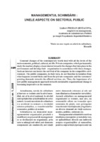 Managementul schimbării. Unele aspecte în sectorul public Constant changes of the contemporary world deal with all the levels of the socio-economic, political, cultural, etc life. Private companies, which permanently study the market, display a keen interest towards the changes that take place in the environment and develop their organization in accordance with these changes. Such an interest can insure the survival of the company in the competitive environment. The public companies, in their turn, do not function in isolation from what happens around them and from the private companies and the customers’ growing demands towards the offered services, etc. Thus, the importance of a new public management approach towards sustainable organizational change is becoming imperative at the moment.