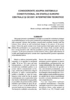 Considerente asupra sistemului constituţional în statele Europei Centrale şi de Est This paper presents a preliminary attempt to account for variation in changes in presidential power across post-communist presidential governments. It argues that economic reforms that produce concentrated economic benefits lead the winners from reform to seek institutional change in the powers of the presidency. Where the party system is too weak to protect their gains (and too weak defend the parliament as an organization), the winners from economic reform have strong incentives ally with the president to push for greater power for the executive. In the post-communist world countries with a rapid redistribution of wealth and fragmented party systems have experienced the greatest expansions of presidential power.