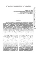 Infracţiuni în domeniul informaticii The rapid development of informational and communication technologies have brought numerous negative aspects to the foreground. On the one hand, it permits a kind of criminality which could not be possible without the information systems; on the other hand, it offers increased opportunities of committing traditional infringements. Before the epoch of distributed informational systems, the main concern regarding the security of informational data consisted in maintaining their confidentiality, a thing which could be realized through a simple physical protection (for example, by locking or leaving the information in special places where it was kept). Alongside confidentiality, some other important aspects appeared nowadays. The security of informational systems becomes very complex and causes worries to all types of organizations, being at the same time a legal requirement.