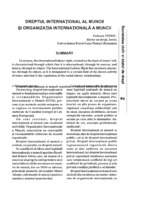 Dreptul internaţional al muncii şi Organizaţia Internaţională a Muncii In essence, the international labour right, created on the basis of states’ will, is characterised through which that it is international, through its sources, and intern, through its object. The International Labour Right has an intern character, through its object, as it is designated to a certain field of the intern activity of states and that is the regulation of the social labour relationships.