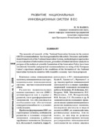 Развитие национальных иновационных систем в ЕС The necessity of research of the National Innovation Systems in the context OECD recommendations has been grounded in this article. Structure and institutional framework of the National Innovation System, methodological approaches to an evaluation of information streams, procedure of industrial cluster analysis on purpose of the technical-scientific foundation of the Innovation Policy have been considered. Scientific and practical recommendations on using of the European Union’s experience adapted to the conditions of the formation of the National Innovation System in countries with transitive economy have been proposed.