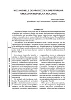Mecanismele de protecţie a drepturilor omului în Republica Moldova The study of human rights came into an authentic international phenomenon of political and legal nature during last decade, implying almost all nations due to its intensity and spreading. Thus, human rights became a much-discussed subject, which allowed, by means of the Universal Declaration of Human Rights, to adopt numerous international regulations, provided with many mechanisms for their application into practice. The adhesion of the Republic of Moldova to the Council of Europe and the ratification of the European Convention for the Protection of Human Rights and of its additional protocols imposed a very detailed analysis of the legislation into force, according to actual social necessities and to criteria of a rule of law, as well as the study of all provisions that are contrary to the Universal Declaration of Human Rights.