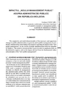 Impactul "Noului Management Public" asupra administraţiei publice din Republica Moldova The complexity and multi-dimensionality of the necessary and opportune changes in public administration, in general, and in public management, in particular, stimulated the undertaking of an analysis regarding the impact of the “new public management” on the system of public administration from the Republic of Moldova. The article is structured into 5 parts in order to emphasize both, on the distinctive aspects, and on the impact derived from the fundamental values and principles of the “new public management”.