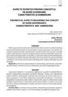 Aspecte teoretice privind conceptul de buna guvernare: caracteristici și dimensiuni O guvernare eficienta și în beneficiul cetațeanului nu poate fi realizata fara asigurarea implementarii principiilor guvernarii deschise. Crearea unei administrații publice moderne, profesioniste, orientata spre furnizarea de servicii publice de calitate, presupune în mod direct asigurarea comunicarii permanente cu societatea, integritatea, funcționarii publici onești și responsabili, precum și înlaturarea tuturor barierelor administrative și birocratice dintre sectorul public și cetațeni. Un guvern deschis contribuie la bunastarea sociala și economica a țarii și se bucura de încrederea cetațenilor.