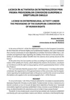 Licența în activitatea de întreprinzator prin prisma prevederilor Convenției Europene a Drepturilor Omului În sensul articolului 1 din Primul Protocol adițional la Convenția Europeana pentru Apararea Drepturilor Omului și a Libertaților Fundamentale, Curtea a menționat ca o licența constituie un bun în funcție de faptul daca deținatorul licenței are o “speranța rezonabila și legitima în privința valabilitații în timp a licenței și a posibilitații de a continua sa obțina beneficii din exercitarea unei activitați în baza acestei licențe”. Totodata, Curtea atenționeaza, ca potrivit jurisprudenței sale, încetarea valabilitații unei licențe, prin care se permitea crearea unei afaceri, constituie o interferența în dreptul de a se bucura de proprietate, care este garantat de articolul 1 din Primul Protocol. Curtea reitereaza ca scopul art. 1 din Protocolul nr. 1 este acela de a pastra un echilibru just între cerințele interesului general al comunitații și cerințele privind drepturile fundamentale ale persoanei și ca preocuparea de a realiza acest echilibru se aplica și celui de-al doilea paragraf al art. 1 din Protocol.