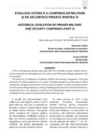 Evoluția istorică a companiilor militare și de securitate private (partea II) In the contemporary period, especially after the Cold War, private military and security companies are developing at a fast pace, and international legal regulations are non-existent. The presence of employees of private military and security companies in the grey zones and in military operations is a reality. The legal regulation of the status of these companies, the types and essence of the services provided, as well as the legal mechanism for prosecuting employees seriously infringing the provisions of international humanitarian law is an imperative need for the international regulatory process and a challenge for the science of international humanitarian law.