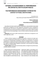 Sistemul de management al performanței în contextul instituțiilor publice Conform ultimelor tendințe în managementul public, un domeniu de studiu separat numit managementul performanței a fost definit prin combinarea a doi termeni: management și performanță. Necesitatea implicarii managementului în atingerea performanței se explica prin faptul ca performanța este tratata ca rezultat, dar pentru a obține un rezultat trebuie neaparat sa proiectam o serie de acțiuni care vizeaza obținerea unui anumit rezultat.