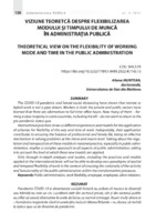 Viziune teoretică despre flexibilizarea modului și timpului de muncă în administrația publică Pandemia COVID-19 și distanțarea sociala forțată au aratat ca munca la distanța sau hibrida nu este un vis. Lucratorii atât din sectorul privat, cât și din sectorul public au aflat ca exista alternative la orele de birou cu norma întreaga. Acum mulți dintre ei – formând o majoritate clara în unele țari, inclusiv Marea Britanie – nu doresc sa revina la status quo-ul de dinainte de pandemie.Practicile internaționale ne demonstreaza diferite experiențe și modele de aplicare a schemelor de flexibilizare a modului și timpului de munca. Indiscutabil, aplicarea acestora contribuie la asigurarea echilibrarii vieții profesionale cu cea de familie, fiind un mecanism eficient în soluționarea problemelor la nivel micro și macro. Vorbind despre reglementarea și transpunerea acestor modele în practica naționala, în special în administrația publica, presupune o abordare complexa a tuturor aspectelor din administrația publica, ținând cont de nivelul la care se aplica aceste modele noi. Doar prin analize și studii aprofundate, inclusiv a practicilor și modelelor aplicate la nivel inetrnațional, vom putea elabora paradigme noi a flexibilitații spațiale și temporale a muncii în contextul asigurarii continuitații activitații și funcționalitații administrației publice în cadrul proceselor de transformare.