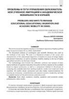 Проблемы и способ управления образовательной (учебной) миграцией и академической мобильности в Израиле The article shows the negative situation in the field of migration of highly qualified labor resources to Israel, the so-called ,,brain drain". The theoretical analysis of sociological and scientific literature was used as the methods of this study. The work is a theoretical analysis of the causes and characteristics of the educational migration of students to study at foreign higher educational institutions, as well as academic mobility, leading to the loss of highly specialized specialists by the State of Israel. The methodology used includes the collection, synthesis and analysis of data, logical methods of cognition that allow the author to find a solution to this problem based on logical conclusions, as well as a comparison method. In the process of analyzing the available data from leading academic studies from Israel and other countries, the author draws conclusions and also makes recommendations for creating an innovative, comprehensive and original economic model that will lead to a partial solution of the phenomenon under discussion.