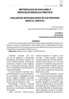 Metodologii de evaluare a serviciilor medicale prestate In this article, the evaluation methods of medical services provided by medical institutions are studied. The performance of the health system is influenced by the way of attracting resources for the quality assurance of medical services and the way of distributing them to the providers of health services.