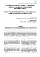 Parteneriatul public-privat ca mecanism juridic de realizare a scopurilor de interes public Increasing the quality of the public administration act is a major objective of public authorities that are at the service of citizens both at the central and local level. From this perspective, the identification and introduction into practice of methods, techniques and work tools aimed at removing subjectivism and efficient use of resources, is a strict and common approach for the public service. In the case, the Public-Private Partnership is one of the mechanisms, established by the state policy of the Republic of Moldova, reflected in the legal framework, which contributes to overcoming the economic crisis situation in the Republic of Moldova, when the medium and long-term funding sources are practically inaccessible within the existing banking system.