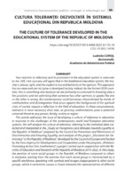 Cultura toleranței dezvoltată în sistemul educațional din Republica Moldova Nu cunosc reacția dumneavoastra referitor la toleranța și promovarea ei în cadrul sistemului educațional dar la sigur ca veți fi de acord ca în sistemul educațional tradițional profesorul are dreptate mereu iar elevul nu are dreptul la parere proprie sau la o gândire diferita. Actualmente, aceasta abordare nu mai are valoare și nici nu poate crește o societate dezvoltata. La sigur pentru fostele țari URSS, aceasta este ceva nou, deoarece suntem deprinși în mare masura sa cunoaștem doar unele poziții și sa nu admitem ca cineva sa aiba alte pareri, alte opinii sau sa vorbeasca ca unul sau altul nu are dreptate. Însa procesele sociale contemporane caracterizate prin tendințe de confruntare și dezintegrare care se produc pe fonul crizei spirituale ale societații cere o reflectare în domeniul educației. În aceste circumstanțe, toleranța este mai necesara ca oricând, deoarece confruntarile, care iau amploare, constituie o amenințare universala potențiala pentru oricare persoana, familie, societate sau regiune. În acest articol abordam problema dezvoltarii culturii toleranței în educație drept raspuns la provocarile lumii contemporane și ale sistemelor educaționale europene. Vom analiza cultura toleranței, raportându-o la datele statistice colectate și interpretate în „Studiul privind percepțiile și atitudinile fața de egalitate în Republica Moldova”, elaborat de catre Consiliul pentru prevenirea și eliminarea discriminarii și asigurarea egalitații, și analiza implementarii proiectului „Educație pentru democrație în Republica Moldova”, realizat de Consiliul Europei și finanțat de Agenția Elvețiana pentru Dezvoltare și Cooperare în cadrul programului „Moldova: Promovarea Implicarii Civice Active”, proiect realizat în cooperare cu Ministerul Educației și Cercetarii al Republicii Moldova în perioada 2019-2022. În cadrul acestui studiu am analizat modul în care se poziționeaza unele grupuri sociale din RM fața de altele, pornind de la premisa ca fiecare grup social se caracterizeaza printr-o viziune asupra lumii specifica, operând cu simboluri și imagini improprii altor grupuri sociale, ceea ce cauzeaza, câteodata, o prapastie între reprezentanții diferitor grupuri sociale, manifestata prin distanțare, printr-o lipsa de înțelegere, acceptare și discriminare. În urma cercetarilor realizate atragem atenția asupra necesitații conceptualizarii, proiectarii și realizarii culturii toleranței în sistemul educațional din Republica Moldova, pregatirii cadrelor didactice de a promova valorile și modalitațile de valorificare a acestei noi educații.