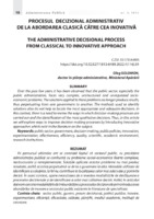 Procesul decizional administrativ de la abordarea clasică către cea inovativă Pe parcursul ultimelor ani se constata faptul ca sectorul public, cu precadere administrația publica se confrunta cu probleme social-economice foarte complexe, nestructurate și nereglementate. Soluțiile aplicate acestor probleme nu mai produc rezultate, astfel, acestea perpetuând-se de la o guvernare la alta. Metodele utilizate de identificare a soluțiilor, la fel nu contribuie la localizarea celor mai adecvate și potrivite decizii. În acest context, apare necesitatea de a revedea modalitațile de desfașurare a proceselor decizionale și de identificare a celor mai calitative decizii. Astfel, în articolul dat vom cerceta modalitațile de îmbunatațire a proceselor decizionale prin introducerea abordarilor de inovare a sectorului public existente în literatura de specialitate.