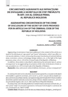 Circumstanțe agravante ale infracțiunii de divulgare a secretului de stat prevazute în art. 344 al Codului penal al Republicii Moldova Aggravating circumstances have been addressed in the content of the article as a result of the disclosure of ,,top secret" and "secret" information, which may affect social security relations, in terms of ensuring the proper functioning of national defense areas, economics, science, technology, foreign relations, etc., in the light of the legal provisions of par. (2) art. 344 of the Criminal Code of the Republic of Moldova. In addition, the problem is described in determining the estimated sign of ,,serious consequences", as an aggravating circumstance of the crime of disclosure of state secret, provided in art. 344 Criminal Code of the Republic of Moldova.