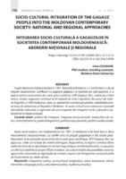 Socio-cultural integration of the Gagauz people into the Moldovan contemporary society: national and regional approaches Dupa obținerea independenței în 1991, Republica Moldova s-a confruntat cu doua mișcari secesioniste. Conflictul cu poporul gagauz s-a rezolvat pe cale pașnica, și a aparut prima autonomie din zona post-sovietica, UTA Gagauz Yeri, creata pe criterii etnice. Astazi, regiunea continua sa fie izolata de restul republicii din punct de vedere lingvistic și informațional, ceea ce reprezinta o provocare pentru viabilitatea proiectului de statalitate al Republicii Moldova. În acest articol sunt analizate in paralel abordarile naționale și regionale ale unor aspecte ale integrarii socio-culturale a autonomiei la etapa actuala.
