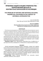 Проблема наций и национального строительства: теоретический дискурс в контексте исторической ретроспективы В статье рассматривается историческая ретроспектива термина «нация» от появления этого термина в Древнем Риме до его современного понимания. Он показывает, что в науке и практике нет единого мнения относительно категории «нация» и ее характеристик. Доказано, что государство должно уделять особое внимание строительству нации, поскольку нация, как сложная единая социокультурная система, имеет исключительно важное значение для национальной солидарности и укрепления национальной государственности, стабильности политико-правового жизнь государства, обеспечение национальных интересов