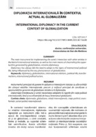 Diplomația internațională în contextul actual al globalizării Instrumentul principal de punere în aplicare a interacțiunii statului cu alte entitați din câmpul relațiilor internaționale, precum și mijlocul principal de canalizare a oportunitaților generate de globalizare ramâne a fi diplomația. Diplomația întotdeauna a simțit necesitatea adaptarii la rigorile din viața politica internaționala, fiind și ea influențata de însuși fenomenul globalizarii.