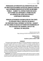 Persoana autorizată sau învestită de stat să presteze în numele acestuia servicii publice sau să îndeplinească activități de interes public – subiect al infracțiunii de exces de putere sau depașire a atribuțiilor de serviciu în legislația penală a Republicii Moldova În prezentul studiu este analizata noțiunea de persoana autorizata sau învestita de stat sa presteze în numele acestuia servicii publice sau sa îndeplineasca activitați de interes public – subiect al infracțiunii de exces de putere sau depașire a atribuțiilor de serviciu, în special daca aceasta categorie se refera la specialiștii atestați, inclusiv în domeniul construcțiilor. Studiul de fața are scopul sa întregeasca cercetarile efectuate anterior în domeniu, în el fiind evidențiate unele tendințe și aspecte noi, specifice etapei actuale de dezvoltare a relațiilor sociale, precum și a elucida anumite neclaritați pe care le întâmpina organele de drept în procesul aplicarii legi.