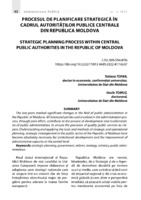 Procesul de planificare strategică în cadrul autorităților publice centrale din Republica Moldova The last years marked significant changes in the field of public administration in the Republic of Moldova. All interested parties and involved in the administration process, through joint effort, contribute to the process of development and modernization of public administration, to ensure the provision of quality public services to citizens. Understanding and applying the tools and methods of strategic and operational planning, strategic management in the public sector of the Republic of Moldova have become absolutely necessary for institutional development and the improvement of administrative capacity at the central level.