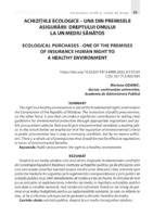 Achizițiile ecologice – una din premisele asigurării dreptului omului la un mediu sănătos Dreptul la un mediu sănătos este unul dintre drepturile fundamentale consfințite de Constituția Republicii Moldova. Instituția achizițiilor publice, pe de altă parte, este una care poate contribui esențial asupra trasării unor directorii clare orientate spre protecția mediului înconjurător prin reglementări corespunzătoare şi prin politici de achiziții publice ce ar oferi standardelor de mediu un loc de frunte. În articolul de mai jos accentuăm că reglementarea criteriilor de mediu în legislația achizițiilor publice este doar o condiție necesară, însă nicidecum suficientă. Există un set întreg de premise ce ar trebui îndeplinite pentru ca reglementările existente, la care ne referim în text, să fie şi eficiente sub aspectul de generare a efectelor benefice de mediu.