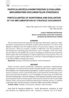 Particularitățile monitorizării și evaluării implementării documentelor strategice Cadrul normativ privind planificarea, elaborarea, aprobarea, implementarea, monitorizarea şi evaluarea documentelor de politici publice este în vigoare în Republica Moldova, dar implementarea prevederilor acestuia necesită mai mult efort şi resurse. În prezent, există o serie de dificultăți cu procedurile de monitorizare şi evaluare a documentelor de politici, cum ar fi strategiile. În acelaşi timp, anul 2020 a fost termenul-limită pentru o serie de strategii la nivel național şi sectorial, ceea ce presupune evaluarea finală a acestora pentru îmbunătățirea planificării pentru perioadele viitoare. Astfel, este necesară analizarea deficiențelor existente, precum şi studierea şi aplicarea celor mai bune practici în domeniul M&E documentelor strategice.