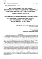 Aspecte legale și instituționale determinante în dialogul dintre autoritățile publice și organizațiile societății civile din Republica Moldova (continuare) OSC-urile sunt o componentă cheie a unei societăți deschise şi democratice, jucând un rol important în consolidarea democrației şi a statului de drept, dialogul lor cu autoritățile publice fiind o condiție prealabilă. Obiectivul principal al acestei cercetări este de a analiza mediul de activitate şi colaborare a societății civile din perspectiva influenței exercitate de către factorii de natură internă şi externă, care determină conținutul mediului social şi care creează şi stabilesc condițiile de activitate şi colaborare a societății civile cu puterea publică. Lucrarea îşi propune să demonstreze că mai multă comunicare şi colaborare între autoritățile publice şi organizațiile societății civile, probabil va avea ca rezultat un act de guvernare mai incluziv, calitativ şi mai concentrat, abordând astfel eficient nevoile cetățeanului. Autorul analizează şi prezintă sistemele decizionale existente şi mecanismele de consultare ale acestora cu organizațiile societății civile din Republica Moldova, oportunitățile existente de implicare a OSC în procesul de elaborare a politicilor publice şi practicile actuale. În cadrul studiului au fost utilizate o serie de metode de cercetare, menite să evidențieze particularitățile dialogului şi cooperării dintre autoritățile publice (AP) şi OSC, ca parte a actului de guvernare, studiind evoluția în timp şi influența diferitelor factori asupra acestor procese. Am constatat că autoritățile publice nu sunt încă pe deplin conştiente de valoarea dialogului, care este sporadic şi ghidat de anumite interese, care nu coincid întotdeauna cu interesul public. Factorul politic este de asemenea de mare influență, întrucât în ultimii ani s-a înregistrat o presiune din ce în ce mai mare asupra societății civile. Condițiile legale şi rata generală de dezvoltare a organizațiilor societății civile, gradul de dialog şi cooperare al OSC-urilor cu autoritățile publice şi rolul OSC-urilor în creşterea răspunderii generale a autorităților față de propriii cetățeni - sunt elemente importante în dezvoltarea unei societăți democratice, fără de care o societate modernă şi dezvoltată este de neimaginat. Lucrarea reflectă situația din Moldova, care poate fi rezumată astfel: a) Nu există mecanisme sau platforme permanente de cooperare şi consultare, deschise tuturor. Participarea societății civile este limitată la un număr mic de OSC şi nu există stimulente pentru creşterea OSC-urilor. b) APL, comparativ cu APC, se bucură de un nivel mult mai ridicat de „încredere” din partea societății/comunității, dar rareori au resursele şi abilitățile pentru a conduce un dialog constructiv cu OSC-urile; c) Există o reticență dovedită a APL/APC de a aprofunda dialogul şi cooperarea cu societatea civilă; d) Cultura participării este foarte slabă deoarece nu există percepția că participarea este un instrument de schimbare. Sunt enumerate o serie de recomandări pentru a rezolva problemele identificate. Un şir de recomandări sunt propuse pentru a soluționa problemele menționate.