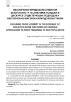 Oбеспечение продовольственной безопасности Pеспублики Mолдова в дискурсе существующих подходов к обеспечению населения продовольствием В статье анализируется продовольственная безопасность как важнейшая составляющая системы национальной безопасности по обеспечению населения страны продовольствием. По мнению авторов, национальная продовольственная безопасность - способность национальной продовольственной системы удовлетворять научно обоснованные физиологические потребности в продовольствии всех социальных групп населения максимально за счет собственного производства при условии равенства этих групп в потреблении минимально достаточного в количественном отношении и сбалансированного по ассортименту набора продовольственных товаров, отвечающего принятым стандартам питательности и качества. Делается вывод, что Республика Молдова в отличие от существующей практики должна подходить к обеспечению продовольственной безопасности в русле общепринятых научных и практических подходов: обеспечение физической и экономической доступности к качественному питанию для всех групп и категорий населения.