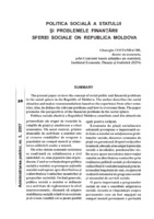 Politica socială a statului și problemele finanţării sferei sociale în Republica Moldova The present paper reviews the concept of social politic and financial problems in the social sphere in the Republic of Moldova. The author describes the social situation and makes recommendations based on the experience from other countries. Also, he defines the relevant problems and how to overcome them. The paper promotes the perspectives of the financial problems in the social sphere