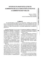 Interdisciplinaritatea știinţei administraţiei şi a cercetării ştiinţifice a administraţiei publice The interdisciplinary character is a cooperative, unifiying and encoding process of the theoretical disciplines applied to the science of administration. The science of administration is not alien to it, the use of a self criterion of a scientific character, to render theoretical basis to the public administration, including the judicial one.