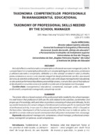 Taxonomia competențelor profesionale în managementul educațional Articolul reflecta o analiza ampla a competențelor profesionale necesare managerului școlar. Se cunoaște faptul ca competențele profesionale sunt competențele legate de selectarea, combinarea și utilizarea adecvata a cunoștințelor, abilitaților și a altor achiziții constând în valori și atitudini, pentru rezolvarea cu succes a unei anumite categorii de situații profesionale specifice unui anumit domeniu de activitate profesionala, în cazul nostru este vorbe despre managementul educațional, ce este centrat pe formarea/dezvoltarea personalitații umane, a omului liber care sa faca opțiune/ sa decida pentru o anumita construcție statala și sociala care sa-l protejeze și sa-l încurajeze.