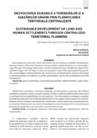 Dezvoltarea durabilă a terenurilor și a așezărilor umane prin planificarea teritorială centralizată Planificarare teritoriului a devenit o etalonare de baza pentru a promova dezvoltarea durabila a așezarilor umane. Cu toate acestea, ramâne o lipsa de implementare sistematica și cantitativa privind planificarea la nivel național. Prin intermediul cronologiei și analizei, dezvoltarea teritoriala este împarțita aproximativ în trei etape: prima etapa este caracterizata de studiul sistemului de planificare a teritoriului, a doua etapa este caracterizata prin construirea infrastructurii, iar cea de-a treia etapa se caracterizeaza printr-un accent pus pe participarea publicului și pe instituirea mecanismelor de stat.