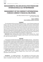 Managementul relațiilor valutar-financiare internaționale ale întreprinderii În acest articol se trateaza setul de probleme legate de relațiiile economice – valutar-financiare cu strainatatea. În acest scop am prezentat, mai întâi, conceptele generale ale acestui proces incluzând politica valutara, piața valutara însoțita de cursul de schimb valutar. Pentru activitatea practica a managerului financiar al întreprinderii o importanța deosebita au transferurile de fonduri prin bancile corespondente. De aceia am considerat oportun cunoașterea de catre managerul financiar a mișcarii fondurilor în procesul de import-export de marfuri. În acest caz este necesar de înțeles astfel de categorii financiare ca: contul ,,nostro”, contul ,,vostro”, operațiuni la vedere (,,spot”), operațiuni la termen (,,forward”), acreditivul documentar, incaso documentar etc. Relațiile valutar-financiare internaționale sunt prezentate ca un proces complex.