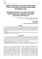 Иммиграционная политика некоторых стран: на примере Германии, Ирландии, Молдова и США The article is devoted to the problems of migration policy and coordination of incoming ows of migrants in some countries, such as Germany, Ireland, Moldova and the United States of America. The author identifies the winning points in the policies of each of these countries, as well as negative features, as a result of which countries do not achieve positive results for their economies.