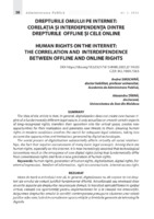Drepturile omului pe internet: corelația și interdependența dintre drepturile offline și cele online Ideea de baza a articolului este ca, în general, digitalizarea nu da naștere la noi drepturi ale omului de natura juridica fundamental diferita. Actualizeaza sau niveleaza doar anumite aspecte ale drepturilor recunoscute demult, le transfera aplicabilitatea în spațiul virtual, creeaza noi oportunitați pentru implementarea lor și le creeaza noi amenințari. Asigurarea drepturilor omului în condiții contemporane presupune cautarea unor soluții juridice adecvate, luând în considerare oportunitațile și limitarile generate de tehnologiile digitale.Procesele globale de digitalizare afecteaza semnificativ aproape toate relațiile sociale, ceea ce necesita o regândire a multor concepte juridice de baza. Unul dintre ele este drepturile omului. Astazi, se susține din ce în ce mai mult ca inovația tehnologica conduce la apariția unor noi drepturi digitale ale omului, care sunt fundamental diferite de drepturile tradiționale și formeaza o noua generație de drepturi ale omului.