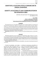 Identitate, aculturalitate și comunicare în spațiul european Identitatea reprezinta un proces complex, care include limba, religia, cultura etc. și urmeaza a fi interpretata din perspectiva individuala sau colectiva. Identitatea culturala este doar o componenta a conceptului de identitate, care da valoare ființei umane. Din aceasta perspectiva, nevoia de identitate culturala este o condiție a echilibrului psihic uman; nevoia de alteritate asigurând o posibilitate a dialogului.