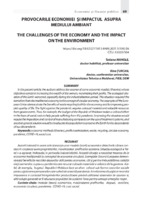 Provocarile economiei și impactul asupra mediului ambiant Autorii tratează în acest articol esența unor modele (teorii) economice obiectivele cărora constau în creșterea averii proprietarilor, maximizarea profiturilor acestora. Situația ecologică a Terrei s-a agravat, îndeosebi, în perioada industrializării. Această situație a necesitat trecerea de la economia tradițională la conceptul de economie circulară. Exemplele Uniunii Europene demonstrează beneficiile reciclării deșeurilor atât pentru economie, cât și pentru îmbunătățirea calității vieții oamenilor. Lupta cu pandemia cere resurse colosale materiale si valorice de la guverne. Astfel, de exemplu, bugetul Republicii Moldova face un efort colosal sub forma costurilor sociale pentru ajutorarea persoanelor care suferă de această pandemie. Ameliorarea situației ar necesita impunerea si controlul întreprinderilor producătoare privind utilizarea sistemelor de epurare si, altă soluție generală ar fi educarea populației de a păstra Terra pentru urmașii urmașilor noștri.