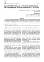 Cultura profesională a funcționarilor publici – un fundament al administrării publice moderne În acest articol abordăm problema culturii profesionale a funcționarilor publici și rolul universităților în formarea și dezvoltarea profesională a acestora. Sunt abordate contradicțiile care stau la baza problemei respective, esența și conținutul culturii profesionale, se fac propuneri privind instrumentele de formare a culturii profesionale a viitorilor funcționari publici în programele de studii universitare.